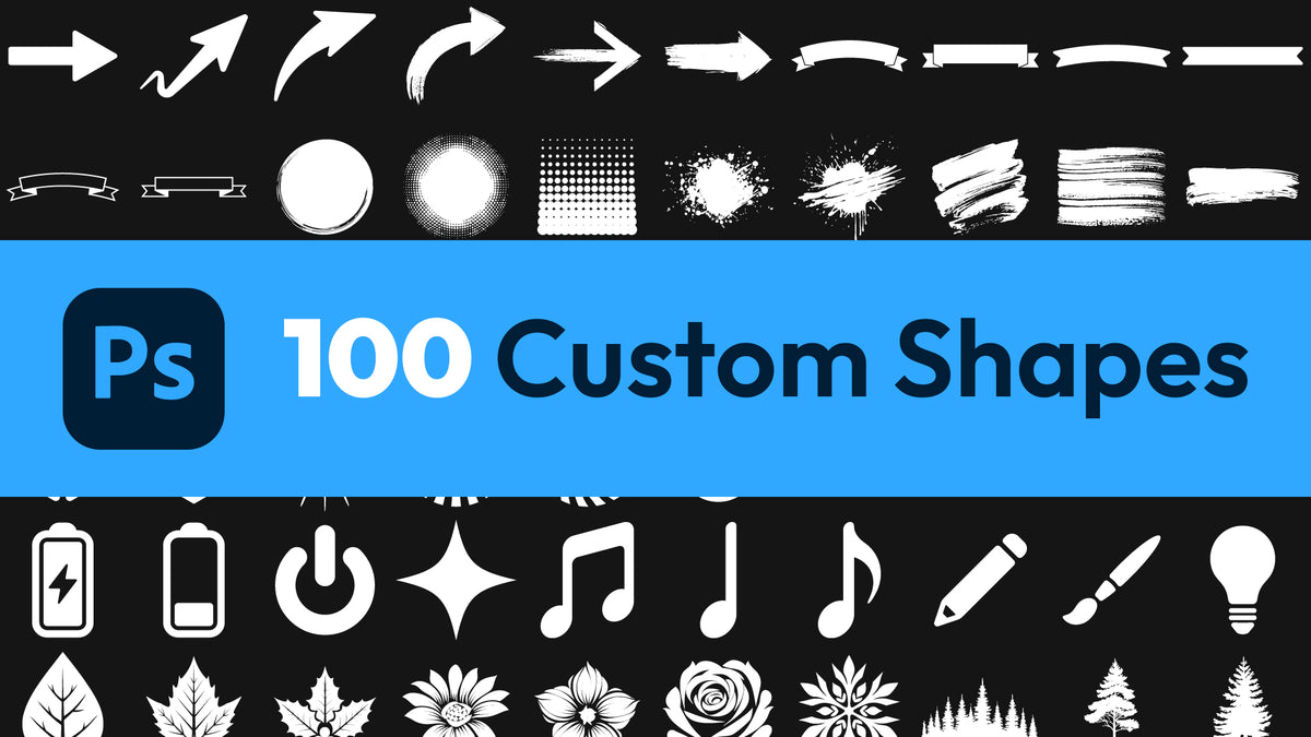 Our 100 Photoshop shapes pack is now available for download. We hope the pack is extremely useful for all of your future projects! For more insights on using custom shapes, visit Adobe's guide on using shapes in Photoshop.